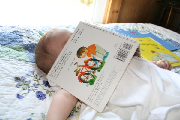 My very own crinkley teether book. But wait- no tags on it?! Oh, well. Where's my blanket? At least it has a tag on it...