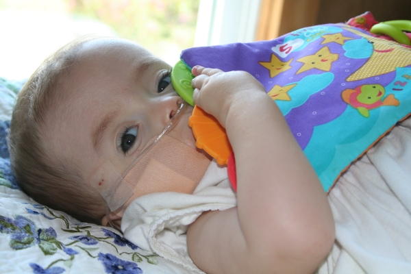 Oh, yes. I should tell you of my new talents, shouldn't I? I have discovered that it's much nicer to chew on tags (you know, those little cloth teethers hanging onto blankets, and other stuff), then all the other teethers with which my family tries to entice me.