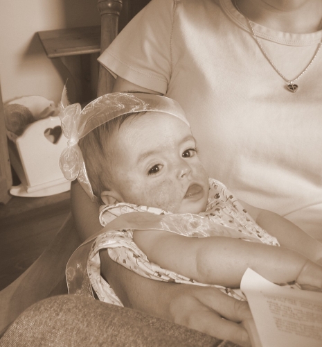 I just love my family! They all dote on me and think I'm so much fun. :) When I "talk" to them, they laugh. When I try to sit on my own, or try to crawl, they cheer me on. Anytime I do something new, it's picture time. It's wonderful to be so loved!